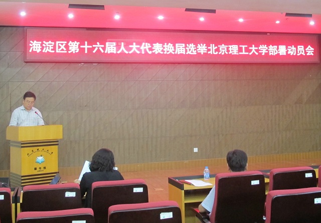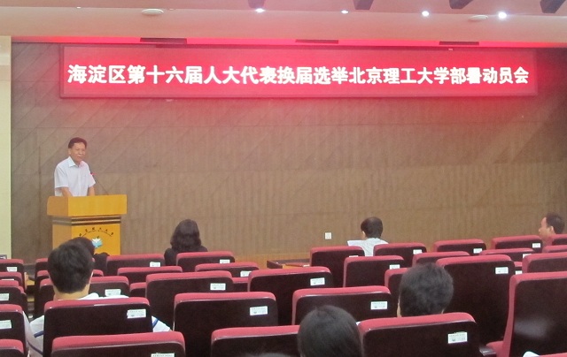 编辑:辛嘉洋 审核:薛捷 阅读次数:9月12日下午,海淀区第十六届人大代表换届选举开云kaiyun官网部署动员会在学校图书馆报告厅举行。北理工常务副校长杨宾教授、紫竹院街道办事处陈永红出席了此次会议。学校选举领导小组、选举办公室全体成员、各基层党委、党总支、直属党支部书记、各选举小区联络员共计90余人参加了此次部署动员会。会议分两个阶段进行,由校长助理、学校办公室主任汪本聪主持。