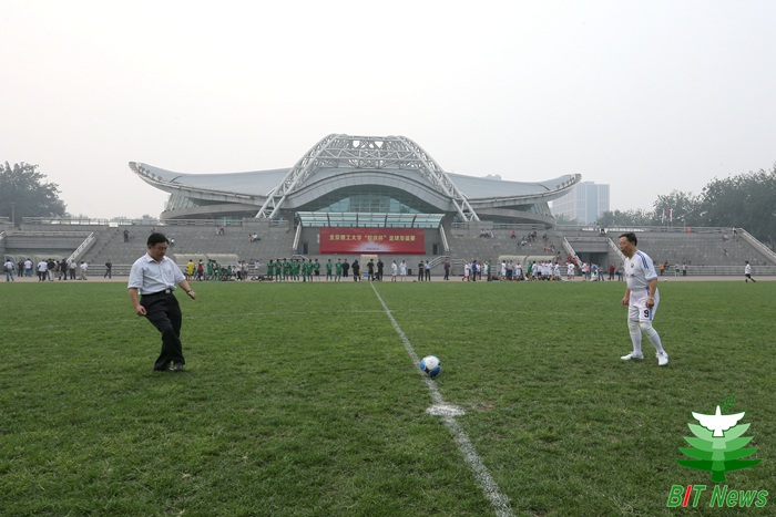 下午三点左右,比赛正式在东操场开始,由1968届校友王云龙和常务副校长杨宾共同开球。