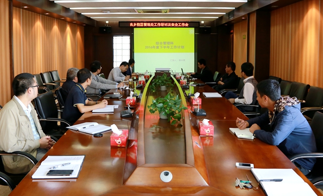 为进一步明确下半年工作重点,梳理各科室工作内容,提高工作效率,促进管理精细化、规范化,推动良乡校区行政管理工作稳步进行。2016年9月29日,良乡校区管理处召开工作研讨及安全工作会,良乡校区管理处全体同志参加会议。会议由良乡校区管理处处长朱光辉主持。