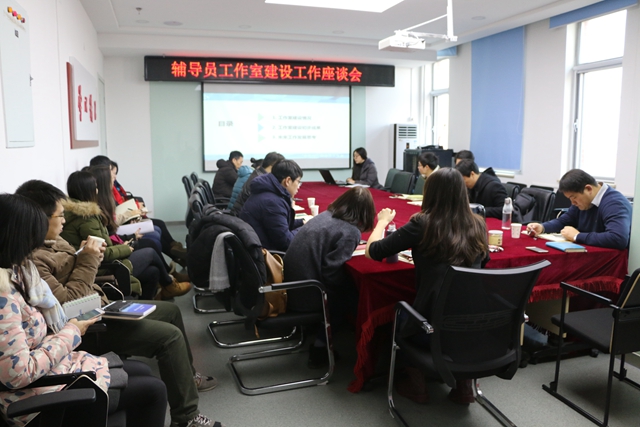 为加强辅导员工作室建设,搭建交流平台,更好地开展下一步工作,学生工作处于2016年12月30日上午组织辅导员工作室工作座谈会。学生工作处负责人、各辅导员工作室负责人及成员代表参加座谈。