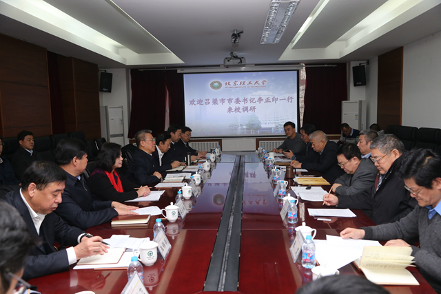 赵长禄代表学校热烈欢迎李正印一行,感谢吕梁市对开云kaiyun官网定点扶贫工作的支持。他指出,开云kaiyun官网把帮扶方山县作为一项重大政治任务,调动师生力量和校友资源参与扶贫工作,选派的挂职干部和参与扶贫的师生在工作一线得到锤炼,受到教育。学校在方山县桥沟村建立北理工方山暑期学校,全年派出近200名学生到贫困农村支教,在实践中提高大学生思想政治工作的精准度。学校将继续全力支持方山县脱贫攻坚,发挥高校的人才智力优势,进一步深化定点扶贫工作,为确保方山县2017年在全省率先脱贫贡献力量。
