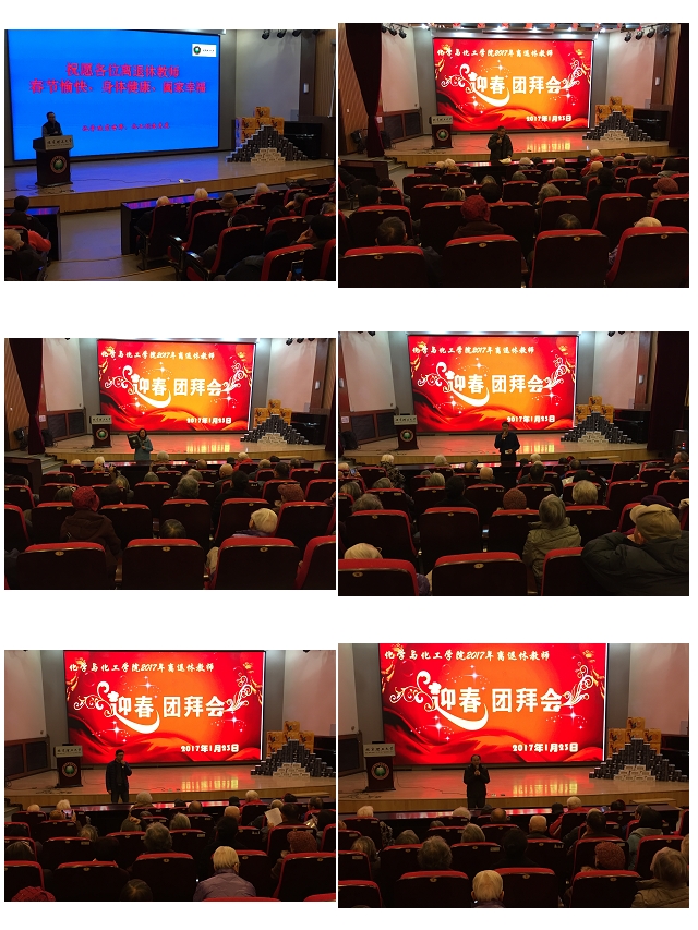 为关心并慰问离退休老教师的生活,听取老教师们的心声,1月23日,化学与化工学院在中关村校区7号楼报告厅组织召开了2017年离退休教师迎春团拜会,学院党委书记赵文祥、院长曲良体等学院领导及部分系主任代表来到了现场,化学与化工学院70余名离退休教师代表参加了团拜会。