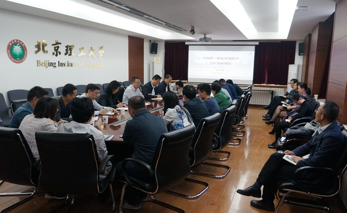 王军政做了本硕博一体化贯通培养取得的成效、下一步工作计划的报告。在取得成效方面主要有前期4个试点学院已完成了本硕博一张课程表,使研究生课程学分压缩了20%,在跨层次选课方面本科生提前选修硕士生课程 99人次、在跨学院/跨学科选课方面781人次,实现了跨学校(北京大学、中国人民大学)选课;梳理了基础理论类、技术实践类、学术报告类、创新研究类等不同特点课程采用大班授课小班辅导、项目案例研讨、学术论文讨论、创新实践研究等学习模式;国际化培养方面本硕博期间出国交流要达到100%、三个月以上出国交流要达到70%;实施本硕博培养全过程质量督导和动态质量督导,并使本科期间学业信息在研究生阶段共享等。对下一部工作计划方面包括:继续做好试点学院一体化工作,扩大试点学院10个以上;优化本硕博课程体系,制订本硕博一张课表;确定本科、硕士、博士层次核心课程并向导师宣贯,希望导师指导研究生向下、向上跨层次选课、跨学科选课;按照不同培养目标,因材施教,采用灵活多样的培养模式;加强课群和团队建设,明确课程负责人和主讲教师的责任和义务,加强课程大纲、教材、教学方法研讨;开展本科国际化专业和研究生全英文授课体系贯通,同时开展留学生本硕博培养;发挥学科已有基础和优势,结合重点实验室,组建本硕博学生参加的创新团队,开展高水平科技创新研究。