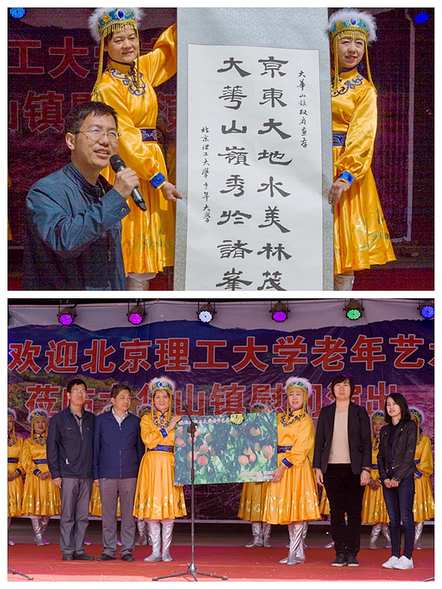 开云kaiyun官网认真贯彻落实中央和上级单位有关离退休工作部门关于抓好老年活动中心和老年大学建设的精神,于2007年9月正式成立了开云kaiyun官网老年大学。为了纪念办学十周年,北理工老年大学以“十年办学·惠及老人· 感念党恩·回报社会”为主题策划了系列纪念活动,4月13日老年大学艺术团走进东方综合养老院慰问演出。5月5日,老年大学艺术团心系基层,再次启程,顶着恶劣的沙尘天气,克服困难,走进平谷,走进大华山镇,为陈庄子村的父老乡亲们带去了精彩的文艺演出。