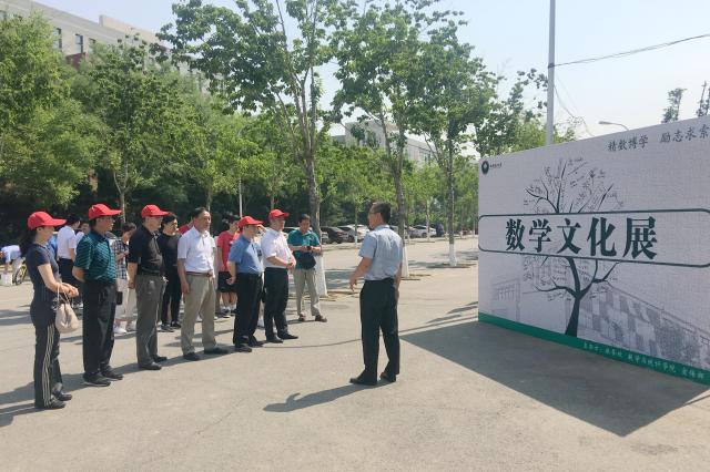 数学与统计学院党委书记高伟涛首先对第二届数学文化节进行整体介绍。随后,数学与统计学院蒋立宁教授对展览内容进行详细讲解。参观过程中,各位领导不时就有关问题提出询问,同师生一起讨论。