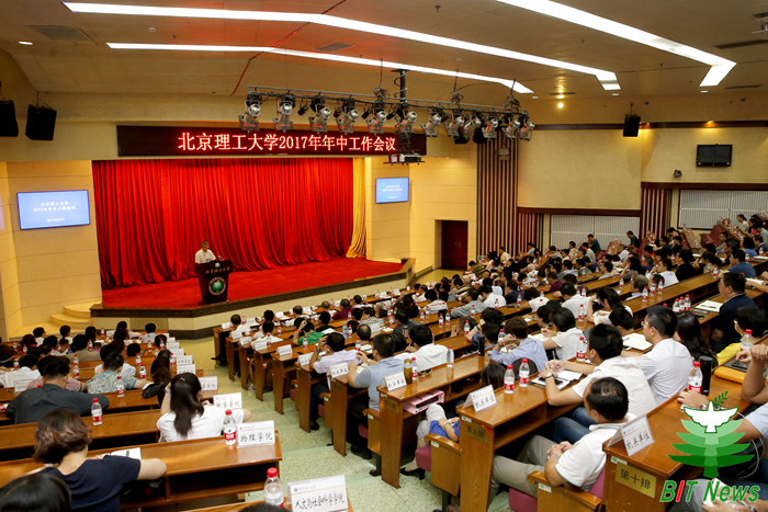 8月28日上午,学校召开2017年年中工作会。全体校领导、原校领导、校长助理,院士、教授、博士生导师代表,全体中层领导人员,教师代表,民主党派和无党派人士代表,离退休教职工代表,学生代表近500人参加了会议。校长胡海岩主持会议。