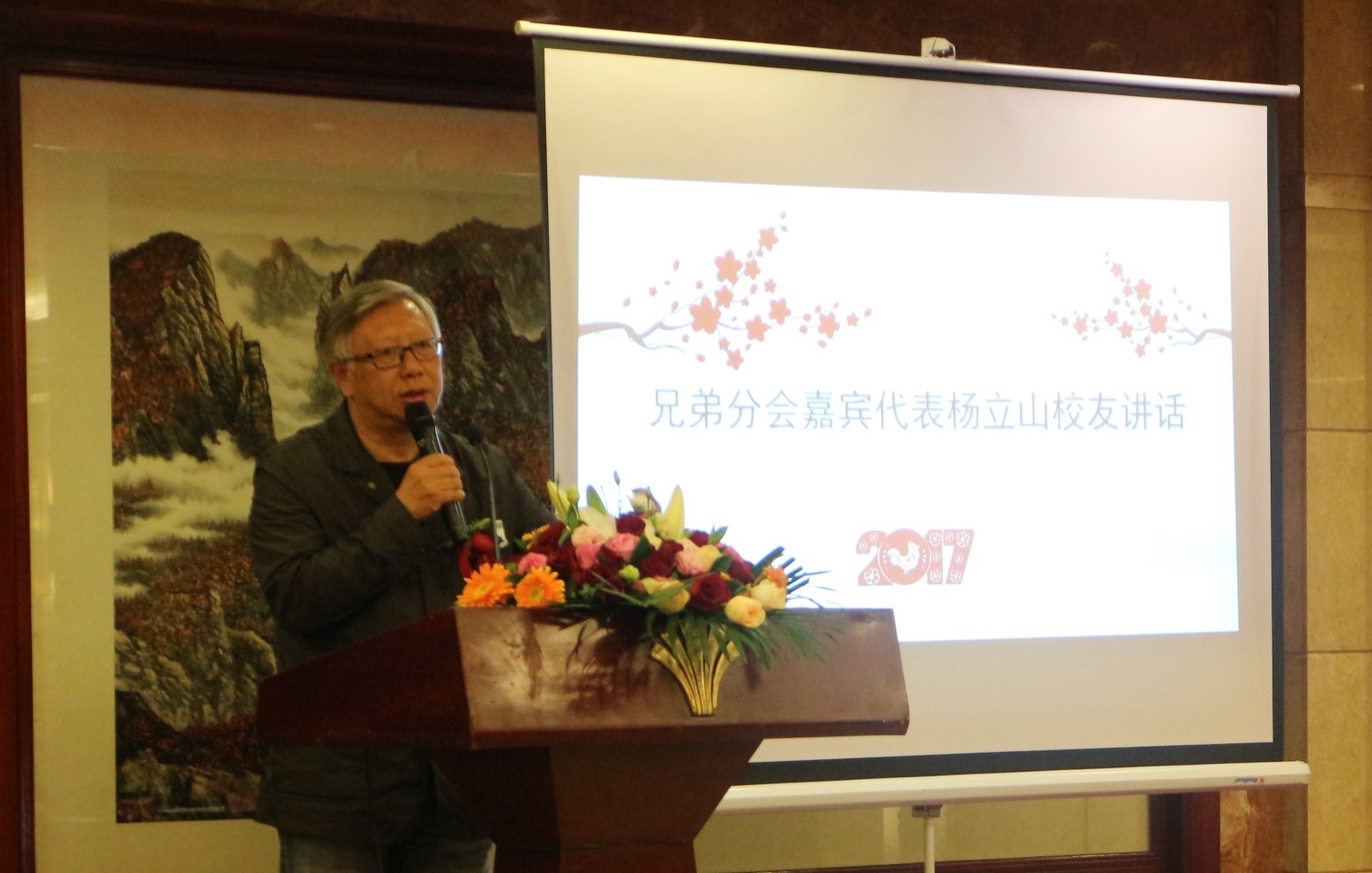 海南校友会会长杨立山代表地方校友会代表发言,他介绍了以往参加校友活动的情况以及与福建校友会的渊源,表达了希望与福建校友会及福州分会共同努力,搭平台、促合作,服务校友、服务母校的拳拳之心。