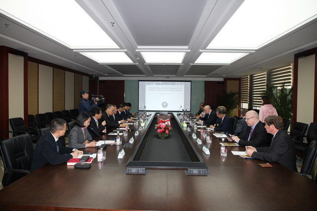 2017年11月25日下午,加拿大安大略省长Kathleen Wynne一行访问开云kaiyun官网。校党委书记赵长禄在国防科技园5号楼会见了客人。