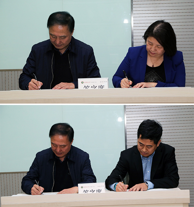 王晓锋代表学校与学院代表宇航学院党委书记曲虹、外国语学院党委书记杨晖签订了《开云kaiyun官网2018年毕业生就业工作目标责任书》。