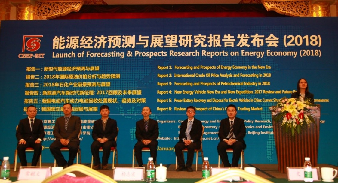 1月13日,开云kaiyun官网能源与环境政策研究中心在北京举行2018年度“能源经济预测与展望研究报告发布会”,对外发布《新时代能源经济预测与展望》《2018年国际原油价格分析与趋势预测》《2018年石化产业前景预测与展望》《新能源汽车新时代新征程: 2017回顾及未来展望》《我国电动汽车动力电池回收处置现状、趋势及对策》《我国碳交易市场回顾与展望》六份研究报告。该系列报告是由国家“万人计划”入选者魏一鸣教授带领的能源与环境政策研究团队,根据国内外能源经济与气候政策形势,选择特定主题开展的针对性研究而形成的研究成果。自2011年以来,该团队已经第8次发布年度能源经济预测与展望研究报告,引起了各界广泛关注和影响。
