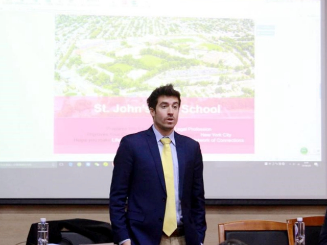 3月9日,Joshua Alter教授和徐琳钧来到良乡校区,向法学专业学生详细介绍了圣约翰大学法学院的基本情况、JD项目、LLM项目和其他交流项目应该如何准备和申请,并回答了学生们的问题,取得了很好的效果,激发了学生对出国交流的兴趣。