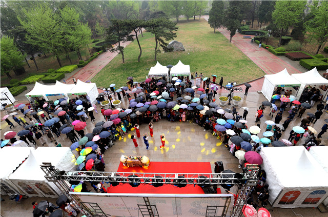 副校长梅宏院士、中国科学院外籍院士福田敏男教授、留学生中心负责人和留学生代表为国际文化节共启盛幕,活动现场被热情高涨的师生及小朋友们围得水泄不通,一把把在雨中撑开的“伞花”成了靓丽的风景线,气氛步入高潮。