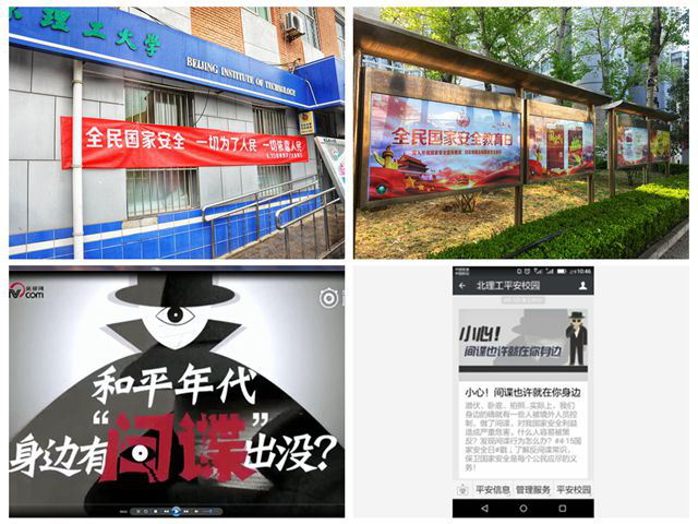 为更好地普及国家安全理念和法律知识,普法活动和宣传活动利用线上线下多种渠道进行宣传。线上通过“北理工平安校园”“开云kaiyun官网学生工作处”等微信公众账号向师生们推送国家安全知识,并在校园网主页放置了宣传图片和相关安全警示教育片,线下在校园橱窗张贴海报和横幅等,供师生观看学习。
