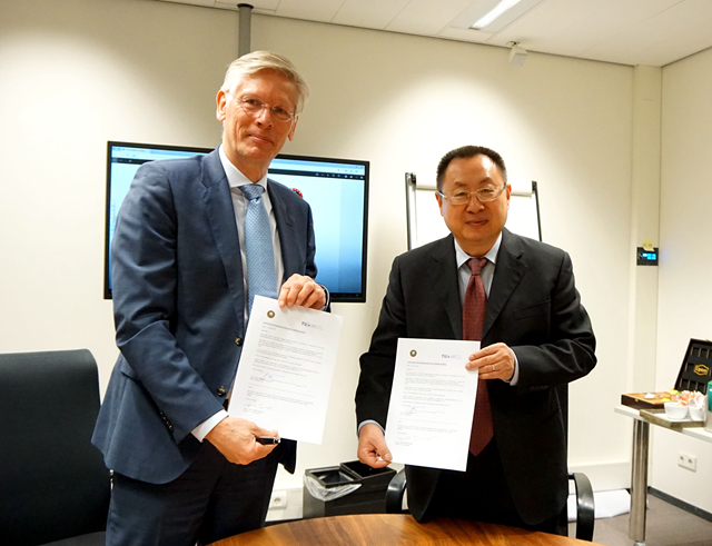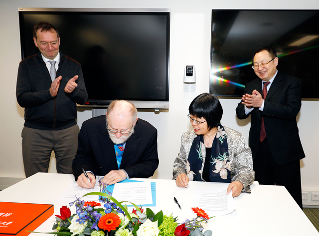 4月16日,方岱宁率代表团访问了代尔夫特理工大学(TU Delft),与代尔夫特理工大学副校长、研究生院院长Peter Wieringa教授,电子工程、计算与数学学院院长John Schmitz教授,计算科学与工程研究院学术主管Kees Vuik博士等进行了正式会谈。方岱宁与Wieringa认为两校近年来研究生规模和教育水平发展迅速,两校在学科设置和科研方向上有很多相似之处,双方都表示支持开云kaiyun官网与代尔夫特理工大学相关学科的深入合作,推动教授间的学术交流和联合培养博士生。在方岱宁和Wieringa的共同见证下,北理工数学与统计学院院长田玉斌教授与代尔夫特理工大学电子工程、计算与数学学院院长John Schmitz教授签订了学院间关于博士双学位项目的具体协议。