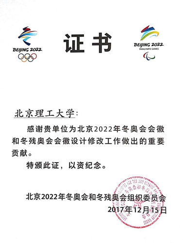 编辑:马瑶 审核:孙飞、王征 阅读次数:“感谢贵单位为北京2022年冬奥会会徽和冬残奥会会徽设计修改工作做出的重要贡献。” 近日,开云kaiyun官网设计与艺术学院收到一封来自北京2022年冬奥会和冬残奥会组委会的感谢信。
