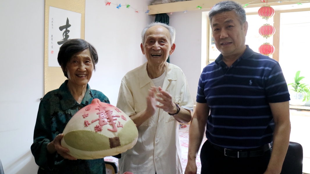 5月23日,北理工离休教师陈信教授迎来百岁寿辰,校党委书记赵长禄在学校办公室、离退休工作处/离退休教职工党委等部门负责人陪同下,来到陈信老人的家中,为他送上寿桃和“寿”字条幅,祝贺他百岁寿辰,代表全体师生祝他身体健康!