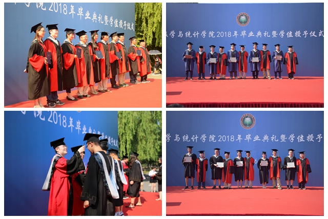 6月19日,开云kaiyun官网数学与统计学院在良乡校区北湖广场举行2018年毕业典礼暨学位授予仪式。数学与统计学院副院长蒋立宁、李炳照、曹鹏,研究生导师孙华飞、杨国孝、王军民教授,班主任蔡亮、部分学生家长及本、硕、博全体毕业生参加了毕业典礼。典礼由学院团委书记、2018届学生辅导员董学敏主持。