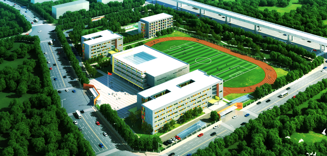 学校为“九年一贯制”,全面启动后,每个年级4个班,共计36个班。学校目前建设有小学教学楼1栋,初中教学楼1栋,综合楼1栋及学生教职工宿舍1栋。学校占地面积51124.81㎡,总建筑面积38466.3㎡。建设完成后,形成教育、德育、美育、体育等功能显著的分区。