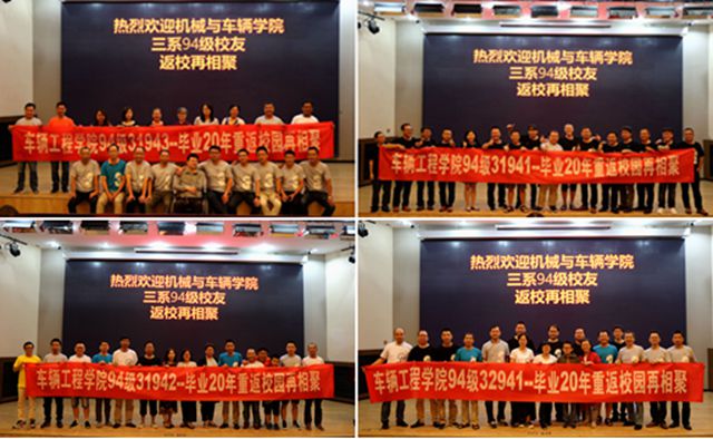 8月18日,机械与车辆学院31、32专业1994级本科生80余名校友在阔别学校二十年之后,重返母校,共庆毕业二十周年,追忆同窗旧事,畅谈人生感悟,展望美好未来。学院党委书记左正兴等学院领导以及原任课教师张振华、林程、张卫正、黄华、剧引芳等出席此次返校庆祝大会。