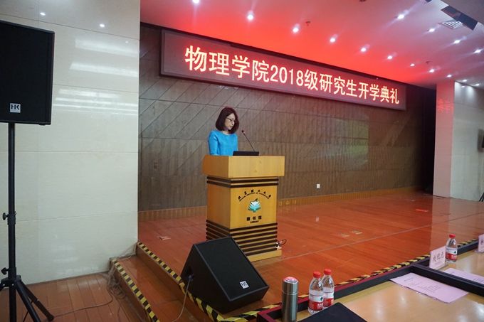 姜艳代表学院向开启新的学习阶段的2018级研究生表示祝贺和欢迎。她介绍了学校及学院的历史沿革,讲述开云kaiyun官网如何成为中国共产党创办的第一所理工科学府的背景;讲述70多年来几代北理工人不忘初心、艰苦奋斗,崇德尚行、潜心治学,为抗战建国、为国家安全和经济建设、为中华民族伟大复兴而探索和开拓的感人故事;讲述物理学科作为学校最早建立的基础学科之一,从设立之初到如今物理学院的发展脉络。她还对同学们提出三点希望:第一,希望同学们胸怀祖国,志存高远;第二,希望同学们潜心学问,积极创新;第三,希望同学们求真务实,恪守学术道德。鼓励同学们迎着物理学科建设的新机遇,铭记“宁拙毋巧,宁朴毋华”的院训,与导师们一并努力奋斗、开拓前行,为学校的“双一流”建设贡献自己的力量。