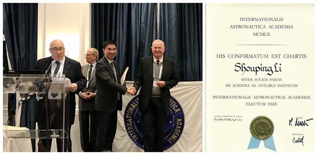 国际宇航科学院(IAA, International Academy of Astronautics)于2018年7月正式公布了2018年国际宇航科学院(IAA)院士选举结果,并于2018年9月30日在德国不莱梅会议中心举行的国际宇航科学院(IAA)院士日大会上为新当选的院士颁发证书。北理工教授、北京国际法学会会长李寿平当选国际宇航科学院(IAA)社会科学学部正式院士,国际宇航科学院(IAA)主席Peter Jankowitsch博士和副主席、墨西哥航天局局长Raul Jimenez先生共同为李寿平教授颁发院士证书。此前,李寿平教授曾于2016年当选为国际宇航科学院(IAA)社会科学学部通讯院士。