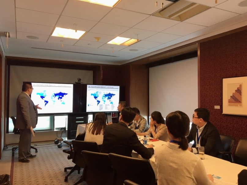 同学们在抵达华盛顿后,访问了世界银行集团,并与世界银行官员进行了座谈。通过与世行人员的交流,同学们了解到世行集团通过向发展中国家提供低息贷款、无息信贷和赠款来帮助这些国家克服穷困,在减轻贫困和提高生活水平的使命引导下发挥着独特的作用。中国于1980年在世行恢复席位,现已成为世行第三大股东,享有6% 的投票权,并从最开始的3名员工发展到如今400余位员工。