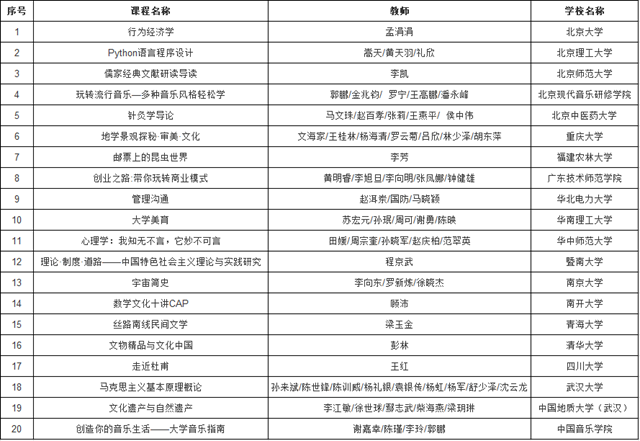 附“最美慕课—首届中国大学慕课精彩100评选展播活动”一等奖获奖名单: