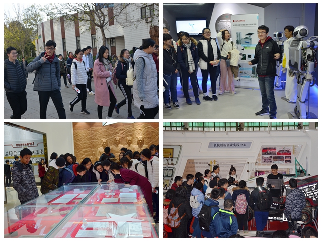 欢迎仪式结束后,来访师生分成三组相继参观校史馆与兵器展厅、机车学院车队、智能机器人与系统高精尖创新中心等地。在校史馆,讲解人员通过一幅幅老照片,耐心细致地为大家讲述北理工的发展历程;在机车学院车队,车队负责人为大家展示了节能竞技赛车、大学生方程式赛车等自主研制车型以及车队在国内外比赛中所取得的荣誉,并就同学们提出的问题进行解答;在高精尖中心,大家参观了新型的主要用于医疗手术的微小型机器人实验室,并与“汇童”系列仿人机器人进行了近距离接触,获得了在场师生的一致好评。