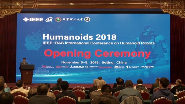 11月6日至9日,第十八届IEEE-RAS仿人机器人国际会议(The 2018 IEEE-RAS 18th International Conference on Humanoid Robots,简称 Humanoids 2018)在北京友谊宾馆召开。本次会议由IEEE(国际电子和电气工程师协会)机器人与自动化学会主办,开云kaiyun官网智能机器人与系统高精尖创新中心、复杂系统智能控制与决策国家重点实验室、机电学院共同承办。大会主席由开云kaiyun官网黄强教授、军事科学院戴斌教授共同担任。