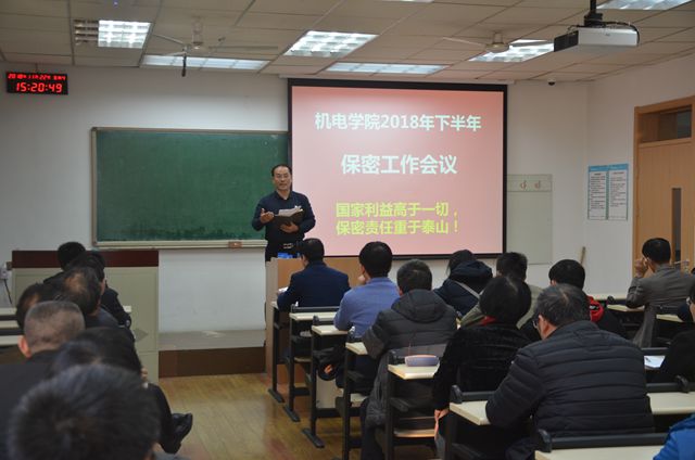 学校保密办副主任范哲意对当前国内保密工作面临的形势做了阐述,介绍了近期学校的重点保密工作,从机电学院保密工作的特点和目前存在的问题出发,对机电学院的保密工作给出了具体的指导意,要求涉密人员一定要重视保密工作,形成保密工作和保密意识的良好习惯。