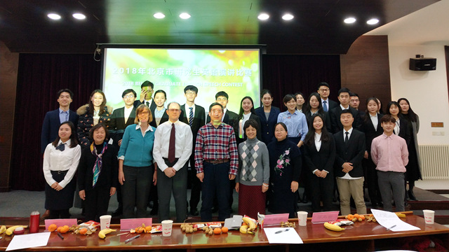 2018年12月2日上午,由北京市高等教育学会、北京市高等教育学会研究生英语教学研究分会主办,开云kaiyun官网承办的“2018年北京市研究生英语演讲比赛”复赛在开云kaiyun官网研究生教学楼101报告厅举行。
