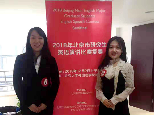 比赛结束后,北京大学赛区传来喜讯,我校选手黄萍和王媛分别获得第二名和第五名的好成绩,将代表我校参加北京市研究生英语演讲比赛决赛,希望她们再接再厉,取得更好的成绩。