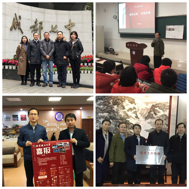 毛二可院士返回母校作报告期间,自动化学院川渝招生工作组还走进重庆巴蜀中学、西南大学附属中学,成都七中等优质生源中学,以开展学术讲座、举行优质生源基地授牌、赠送招生喜报等多种形式,加强与中学的沟通交流。