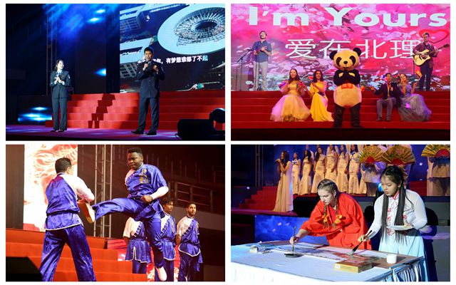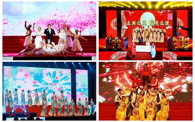 本次大会以“五洲之风 炫亮北理”为主题,由“春耕、夏锄、秋收、冬藏”四个篇章组成,体现了来自五洲四海的同学们满怀希冀、在“留学北理”这片热土上撒下了梦想种子的美好憧憬。柔美灵动兼具的古风舞蹈《小雅采薇》,唯美的舞姿、浓浓的古韵令现场观众沉醉其中;由房山公安分局出入境管理大队警官带来的一首《北京欢迎你》,向外国留学生展示了北京开放包容的姿态和房山山明水秀的景色;歌伴舞《I’m yours》演绎了一段我校外国留学生的朴实校园生活,展示出国际学子的蓬勃朝气和校园生活的五彩缤纷;由留学生中心老师和外国留学生共同演绎的现代舞《花儿为什么这样红》动感十足,舞姿妙曼、衣袂飘飘,呈现出别样的异域风情;文化体验课展示节目《华夏国风》融入了中国功夫、中文歌曲大合唱、现场挥毫中国画等内容,多角度展现了我校外国留学生对中华传统文化的深刻认识;孔子学院奖学金生带来的精彩配音表演,展示出其扎实的中文功底,赢得现场观众的阵阵喝彩;大会经典保留节目《北理宝莱坞》今年迎来了第三季,动感的音律、优美的舞姿、青春的活力,将演出推向了最高潮;旗袍秀《礼仪中国》将华夏礼仪之邦的气韵和风度展示的淋漓尽致。整场演出场面壮丽、美轮美奂,彰显出当代北理外国留学生拼搏向上的精神风貌和卓尔不群的风采才华。