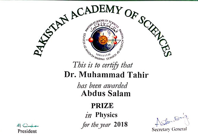 据the Spectacle报道,2018年12月,巴基斯坦科学院和发展中国家科学院授予我校材料学院2011级校友、巴基斯坦籍博士研究生塔黑尔(MUHAMMAD TAHIR)“阿卜杜勒·萨拉姆奖(Abdus Salam Award)”,以奖励其在材料科学研究方面取得的成就。