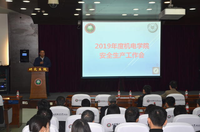 机电学院副院长黄广炎作《机电学院实验室安全管理工作报告》。报告通报了某大学发生的安全责任事故,深入分析了事故成因和管理漏洞,传达了事故责任处理初步方案,要求全院教职人员深刻认识此次事故教训,举一反三,警钟长鸣。报告通报了学院近期安全检查存在的隐患类型,学习学校、学院安全生产方面的相关制度,并对学校、学院本学期安全生产主要工作计划作了传达和布置。报告强调教职人员要高度重视安全生产工作,进一步完善各实验室安全管理制度和全员培训制度,危险化学品全流程管理闭环,深入开展自查自纠,认真完成整改工作。
