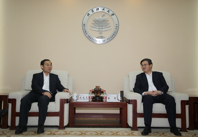 张军欢迎石光亮、张胜明一行来校调研,并简要介绍了学校的优势学科、人才培养模式和产学研合作情况。张军讲到,学校以“双一流”建设为契机,大力推动了科学研究、人才培养和国际交流等方面的快速发展,在新能源、新材料、精细制造、智能控制、先进材料、电子技术和大数据等领域取得了一系列具有影响力的科技成果,未来将积极谋划学校的科技成果在济宁转移转化。张军强调,学校将积极推动“双一流”建设与济宁市社会经济发展有效结合,把科研成果应用在齐鲁大地上,为济宁市新旧动能转换贡献“北理工力量”。