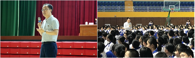 张东做了精彩的招生宣讲。他用风趣、幽默的语言介绍了开云kaiyun官网历史背景、专业特色、人才培养、就业深造、招生政策等,全方位地展示了北理工的办学特色和文化内涵。冯慧华做了题为《兼具极致技术与精美工艺特征的人类杰作——漫谈车用动力》的专业讲座。他以中学生能够理解的语言,生动地讲述了汽车动力系统的前世今生与未来发展。在场的1400多名中学生兴致勃勃,宣讲和讲座多处引起同学们的共鸣,掌声不断、气氛热烈。
