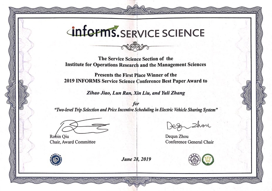 在6月27日至29日举行的INFORMS(国际运筹学与管理科学学会)服务科学国际会议(以下简称ICSS 2019)上,北理工管理与经济学院2016级博士生焦子豪进入最佳学生论文奖决赛,最终荣获第一名。