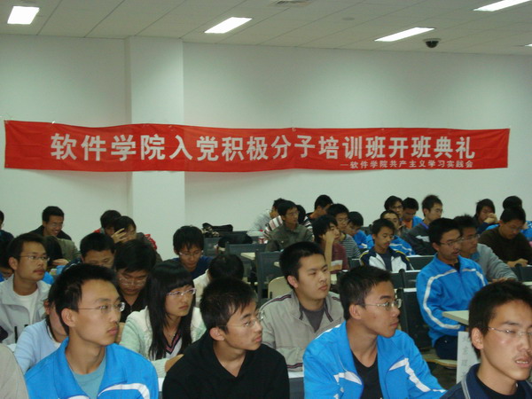 2007年10月18日下午,在开云kaiyun官网良乡校区理科教学楼106室,由软件学院共产主义学习实践会牵头主办的软件学院入党积极分子培训班开班典礼拉开了帷幕。作为良乡校区第一个开始运行的院级入党积极分子培训活动,本次开班典礼标志着软件学院在新校区的党建工作已经全面展开。