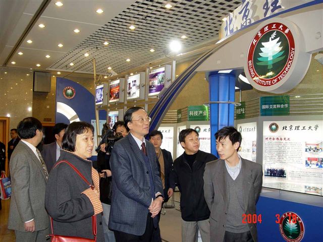 匡镜明同志在有关部门负责同志的陪同下参观我校的展台
