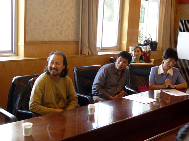 9月21日下午4:30,腾格尔兼职教授聘任仪式在主楼二层会议室举行。党委书记焦文俊,党委副书记、副校长杨宾,副校长杨树兴,副校长赵显利以及校长办公室、人事处、宣传部、校团委 、校工会、教务处、人文学院、艺术教育中心的有关负责人参加了聘任仪式。