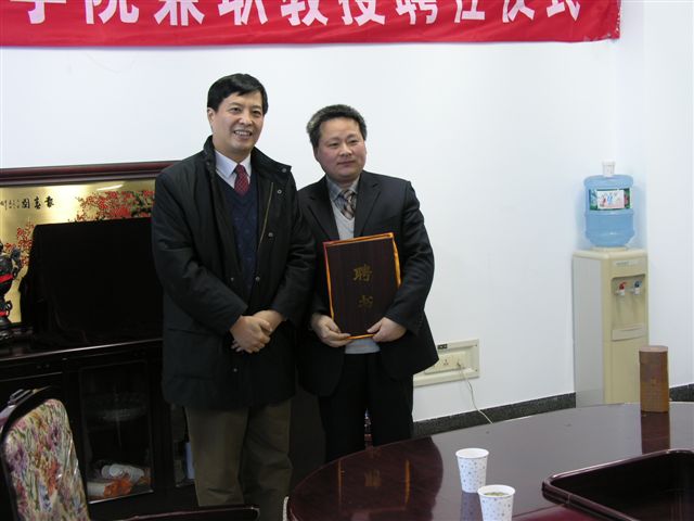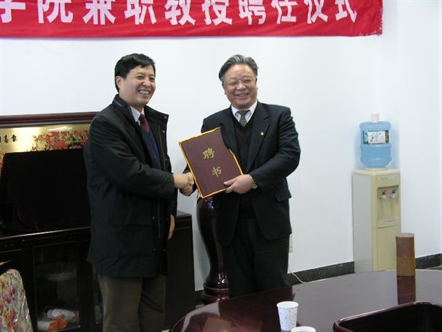 会议首先由李金林院长介绍聘任兼职教授(许榕生、保育钧、张厚义、姜长云)的情况,侯光明副校长代表校领导为兼职教授颁发了聘书。
