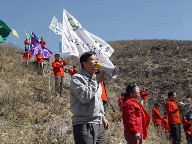 侯光明副校长和密云县林业局的领导在为大家做动员。
