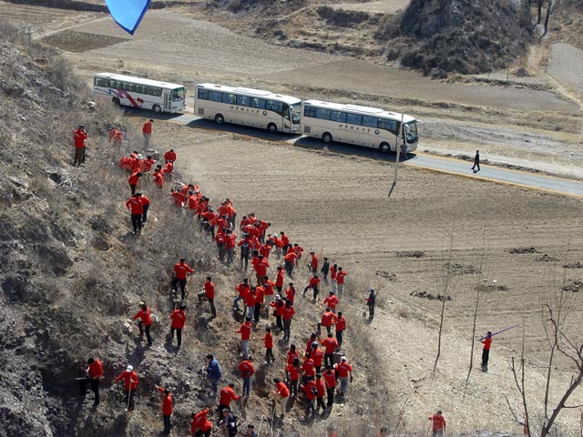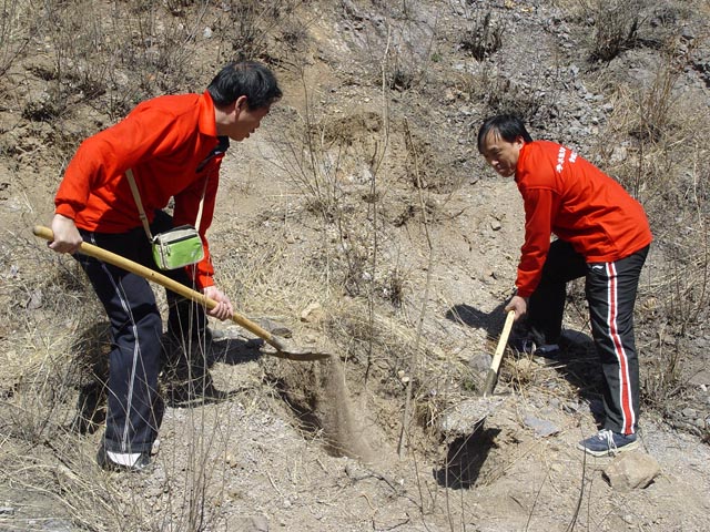 4月3日上午,我校近200名教职员工集体来到密云县太师屯山区植树造林。