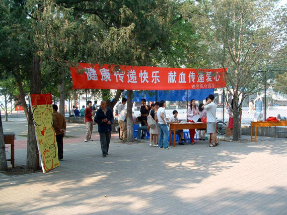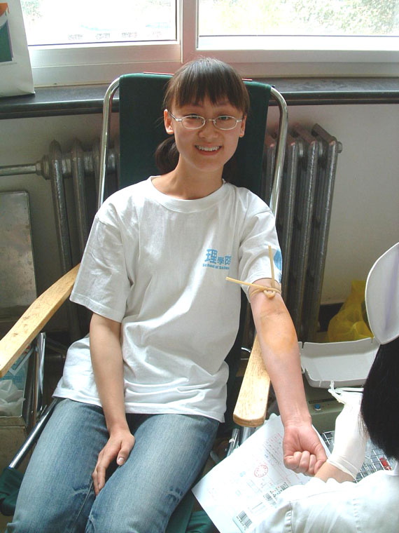 据报道,首都北京2004年的医疗用血高达72吨。这样一个庞大的数字,除了证明北京市供血形势的严峻之外,更让作为当代大学生的我们深刻地感受到,多一个人义务献血,就可能多挽救一条垂危的生命。为了“扬起爱的风帆,播洒爱的甘露”,理学院149名本科生响应学校号召,本着关心社会、关爱他人的精神,以履行公民义务为光荣,于5月28日一起走进了响应号召、义务献血的队伍中去。