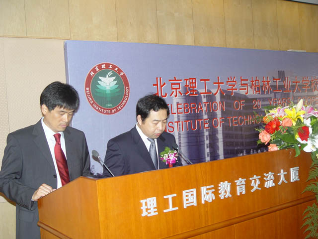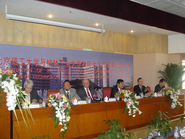 柏林工业大学校长Kutzler教授、我校党委书记焦文俊教授、校长匡镜明教授等在主席台就坐。