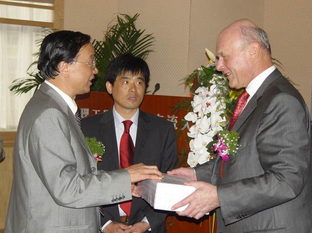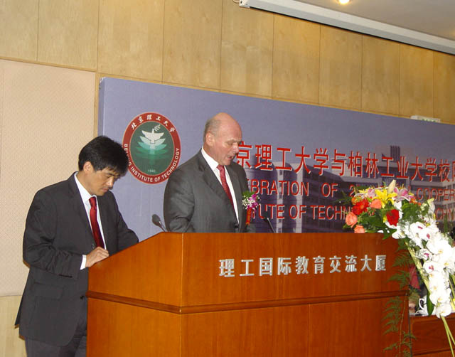 柏林工业大学校长Kutzler教授发表重要讲话,对两校良好的合作关系表示赞叹和欣慰。