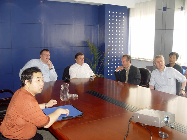 TUB代表团成员在进行通讯主题的学术报告会,我校校长匡镜明教授主持会议。
