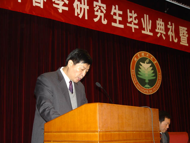材料科学与工程学院博士毕业研究生王建全同学代表2005届毕业研究生发言,他用充满感激之情的言语描绘了美好的校园生活,并向为研究生培养倾注心血的全校教职员工致以崇高的敬意和诚挚的感谢。他还代表毕业研究生同学们向母校郑重表示,将不辜负学校培养和重托,为建设和谐社会做出更大贡献。